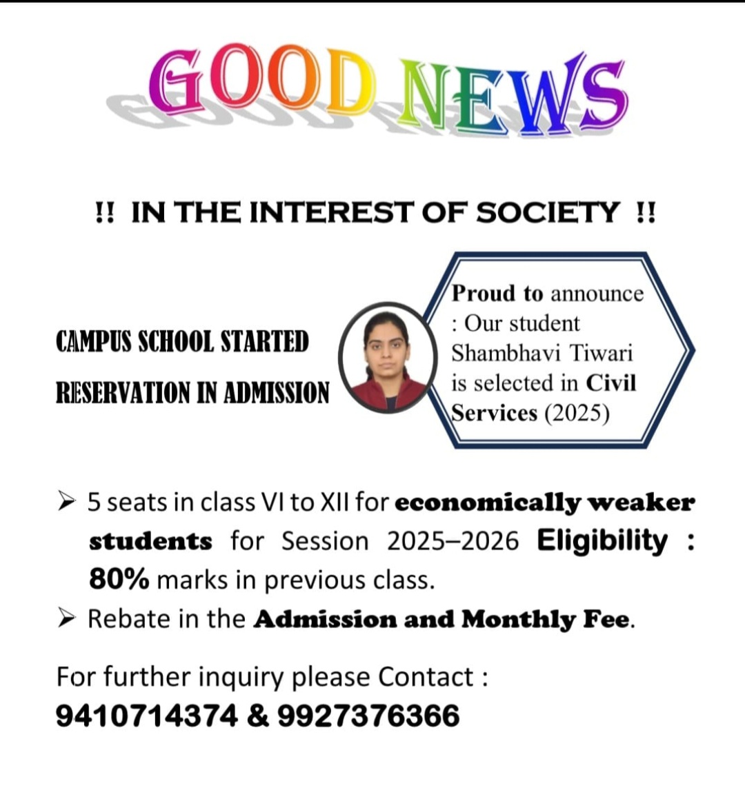 Notice regarding admission in class VI-XII for economically poor candidates  ||